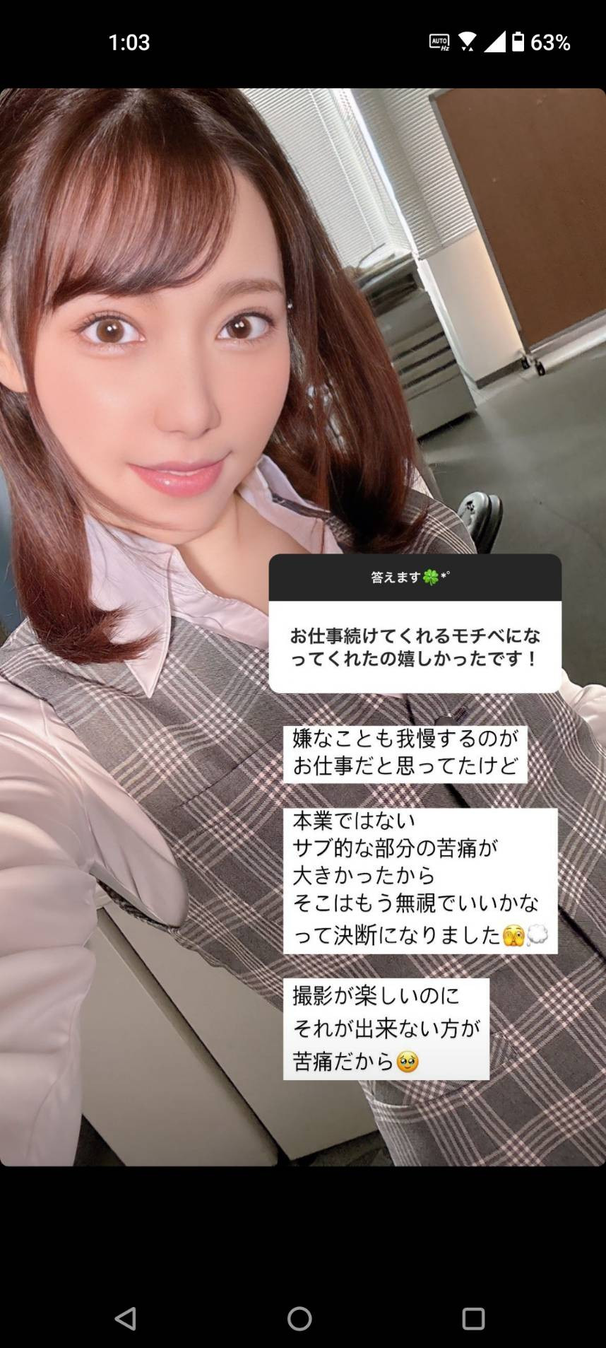 所以我能做的就是盯紧每一个女优,随着掌握她们的状况。像前一阵子讲的一副好像要把休业当引退的さつき芽衣(沙月芽衣)就改变心意了: