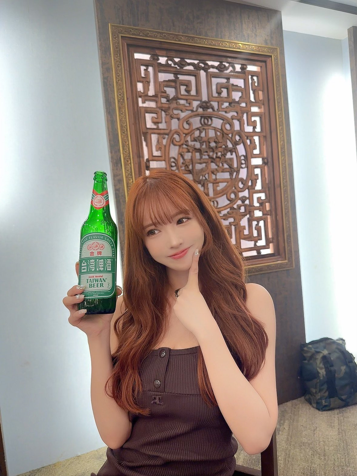 「没⋯」她露出可爱的笑容,很小声地说:「我好紧张。」