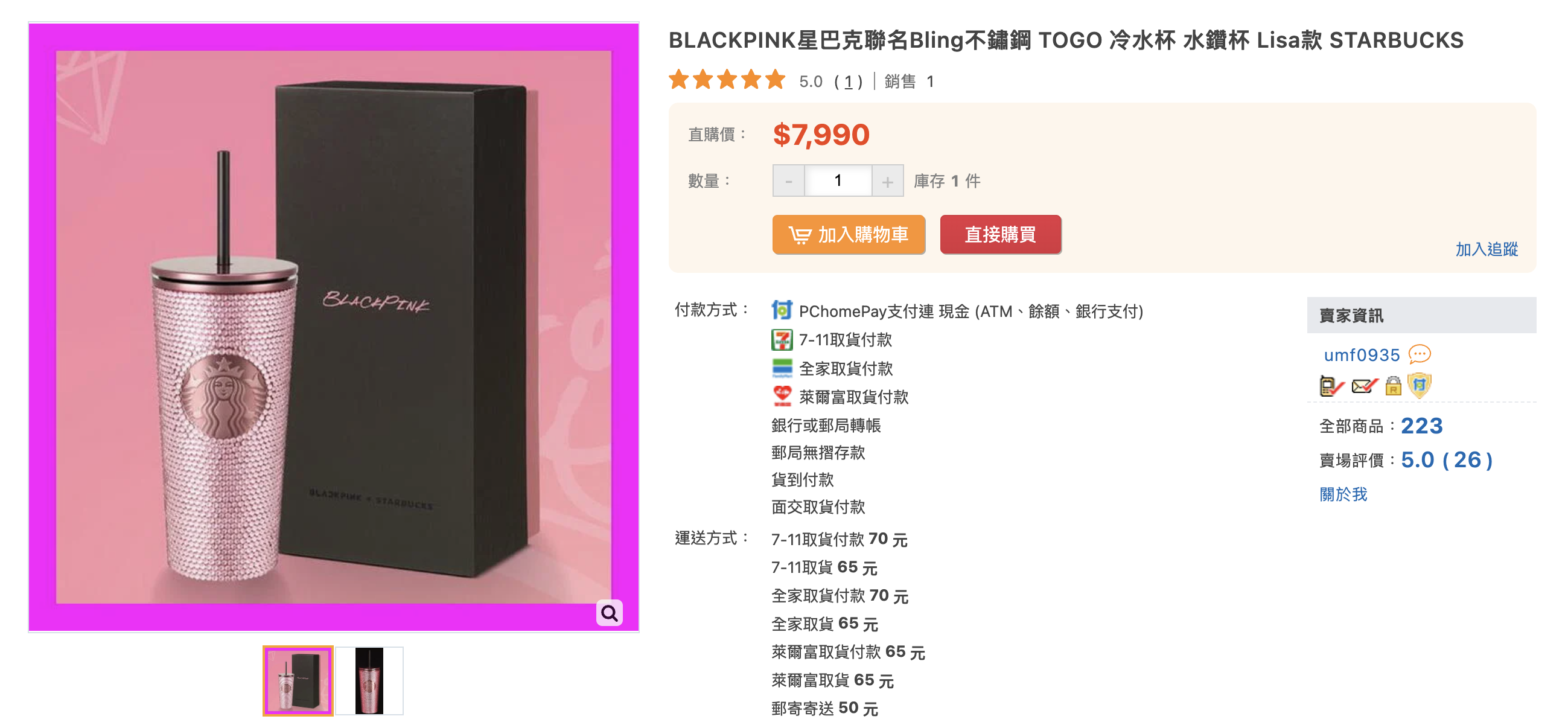 小宵こなん(小宵虎南)的BlackPink星巴克限量杯