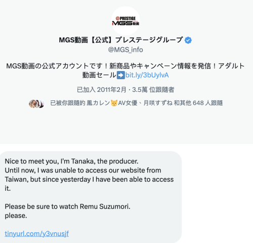 恭喜老爷,贺喜夫人,当然也要感谢MGStage官方,特别用私讯通知我没再锁IP了,前阵子有个朋友问我蚊香社(Prestige)是不是不太重视海外市场?和其他片商相比怎么没太多动作?非也非也,蚊香社其实动作频频,潮牌「Prestige apparel」已经伸出了触手,现在轮到MGStage了: