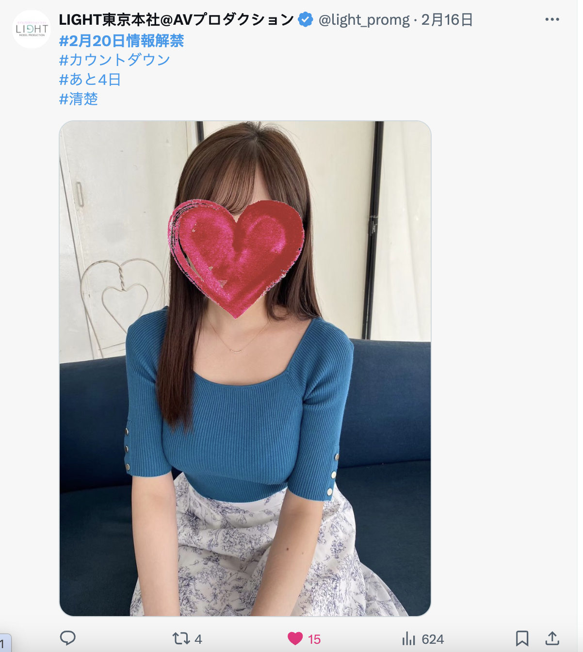 一天两篇发文然后应该会倒数到最后一天,这不用说了,如果2月20日情报解禁时这位女优不是Moodyz专属女优的话那就有鬼了ー而且大家可以回头去看看百田光希即将出道时LIGHT是怎么操作的,虽然不知道这位女优到底有多厉害,但很明显地,在事务所的心目中这位新人不只外型超级强大而且等级也非常非常高⋯