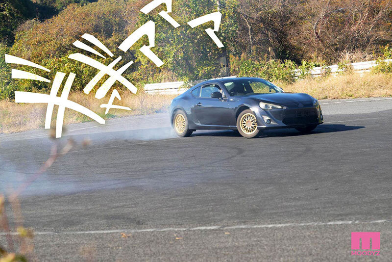 为大家介绍一个单字「ドリフト(Drift)」,这是开车甩尾的意思ー所以你知道为什么「鸟楽ひな(鸟乐阳菜)」要戴个帽子站在车子前面拍封面照、然后最上方那个新人Debut的「D」要放得那么大了吧?没错,虽然这位新人不是赛车手,但她和头文字D的藤原拓海一样很会开车,在赛车场上到处甩尾,让引擎发出刺耳的噪音〜