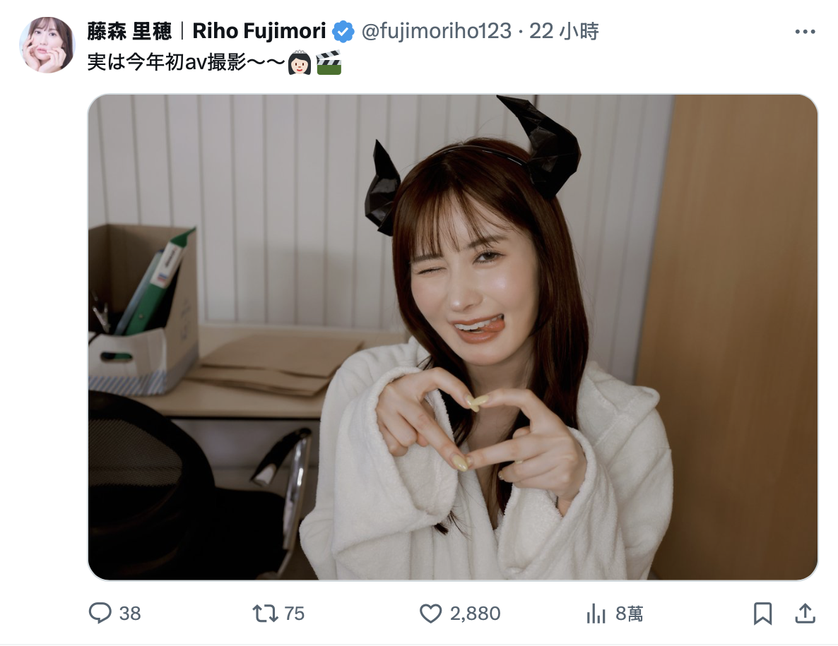 看到藤森里穂(藤森里穗)的发文,我吓了一跳——今年第一部拍片?那三个月之前在干嘛?她没有多解释,之前的发片也正常,活动也做的很精彩,为什么休这么久我真看不出来……