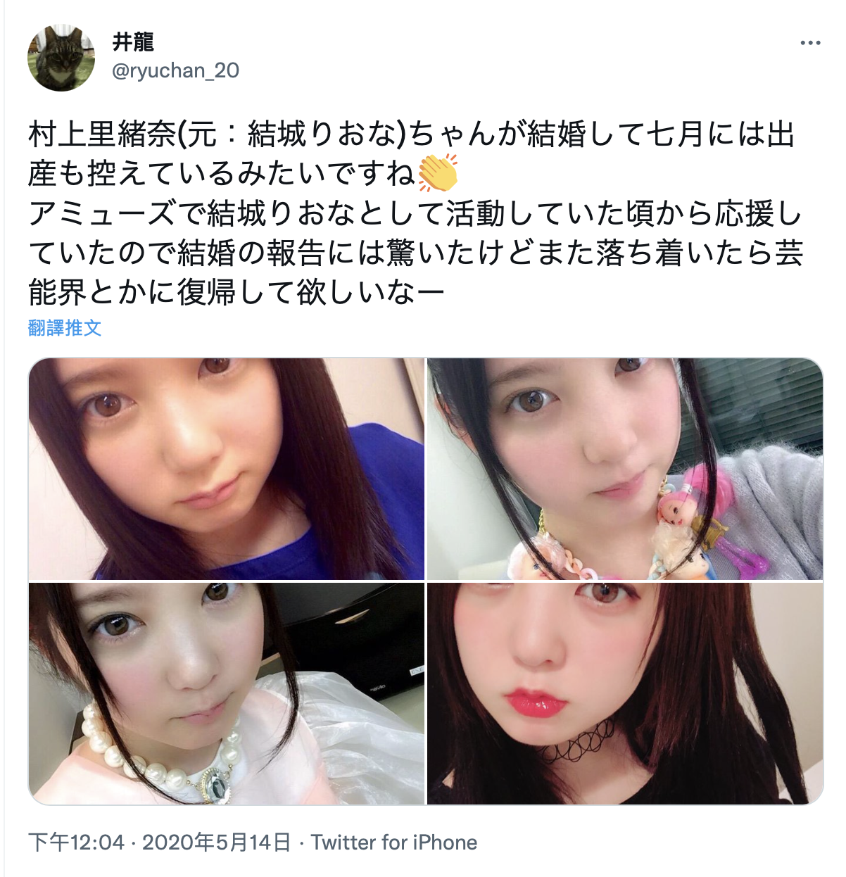 从日本网路的八卦来看,关键是在2020年,有粉丝爆料说改名叫「村上里绪奈」的她要在七月结婚生子,叫人大吃一惊,不过他仍然希望将来等到孩子生了、一切都稳定下来后村上里绪奈能再回到演艺圈,毕竟他可是从这位女星一出道就支持到现在啊〜